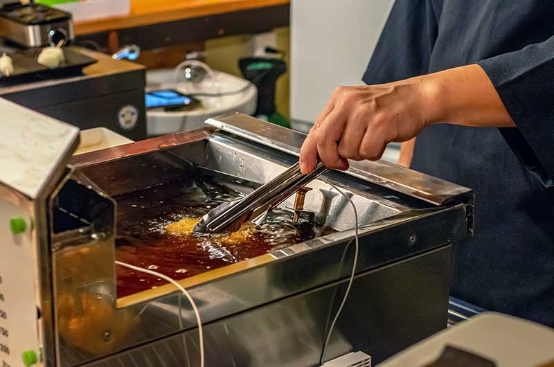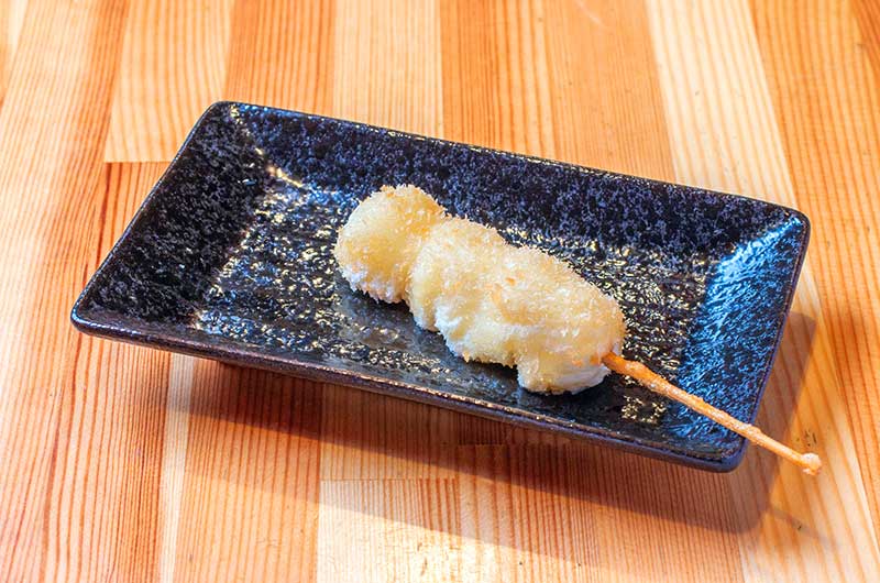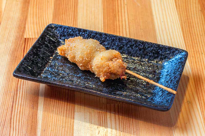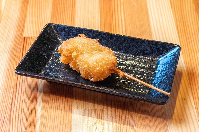 お店がオープンしたのは2019年。以来、串カツをいっそう美味しくすべく試行錯誤を重ねてまいりました。串カツで使用する衣は、パン粉ではなく乾燥おからを使用。軽い食感で脂をあまり吸わないため、たくさん食べても胃もたれすることがありません。ソースも様々なソースを組み合わせ、素材の味を引き立てる絶妙の加減でブレンドしております。
